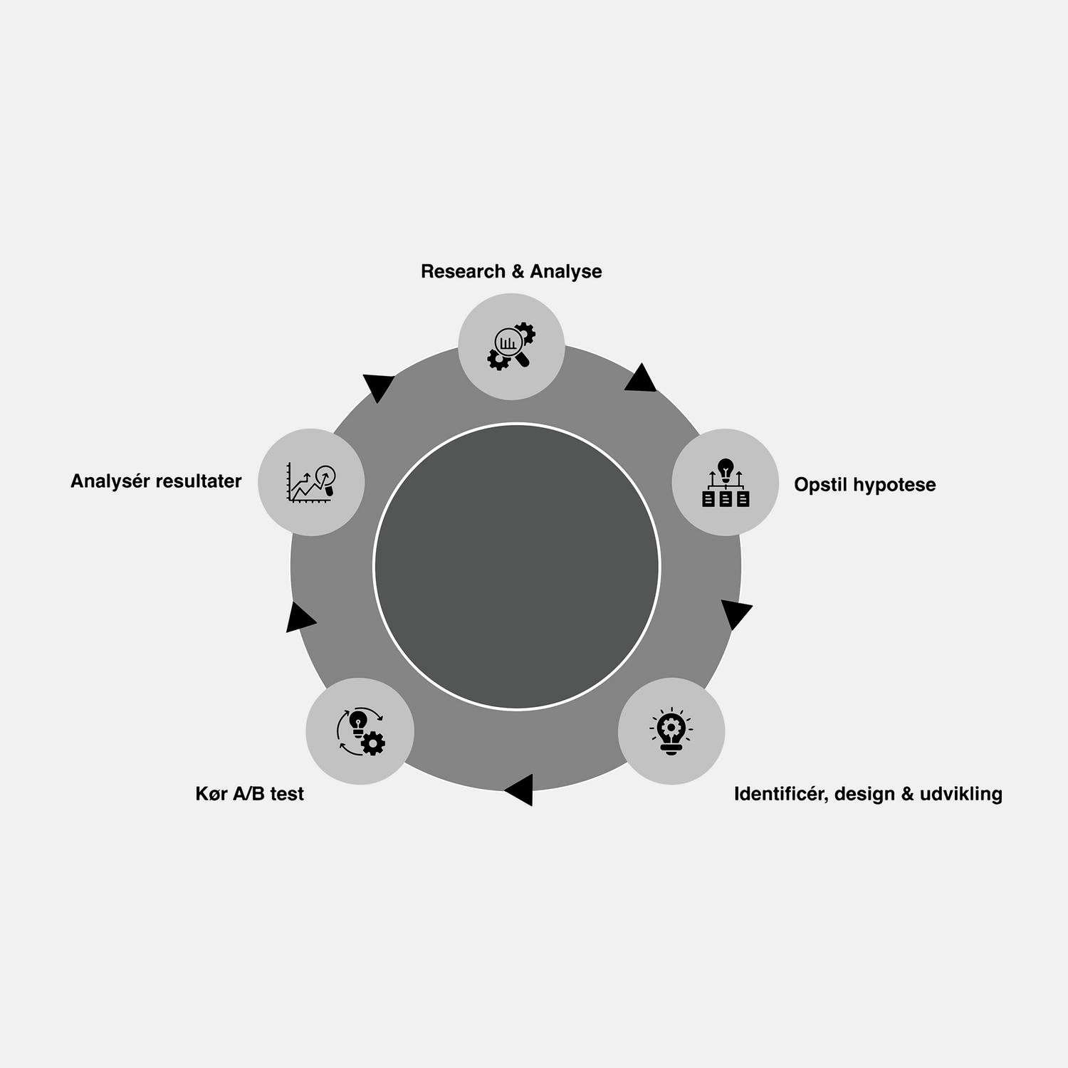 Her kan du se nærmere på alle de brikker, der tilsammen skaber et CRO/UX-optimeringsforløb. I alle stadier af projektet får I adgang til CRO-specialister, UX-designere, tekstforfattere og udviklere med CRO-brillerne skruet helt rigtigt på.